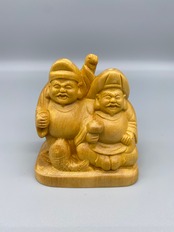 七福神の中の、一番有名な恵比寿と大黒天が一つになった木彫りです。